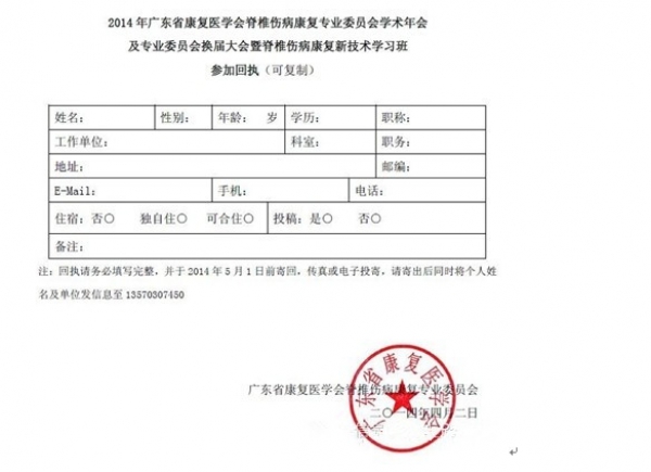 2014年广东省康复医学会脊椎伤病康复专业委员会学术年会秘书处