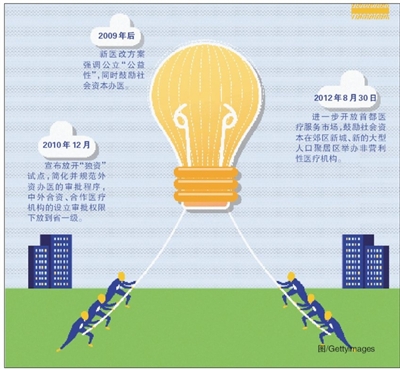 虽然新医改方案强调“保基本”、“公益性”,但同时,鼓励社会办医的新政出台步伐,亦明显加快。