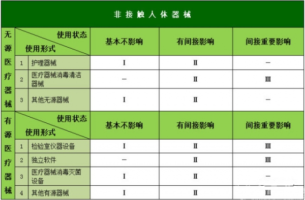 无源非接触人体器械:根据对医疗效果的影响程度,分为基本不影响、有间接影响、间接重要影响;