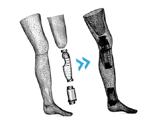 利用FitSocket技术采集的数据,将假肢变成由三角网格组成的模型。该模型使用最少的材料,却具有最高的强度,外形十分平滑。利用应力分析工具和软件,威廉·鲁特对该模型进行了结构和密度补强。当然,要创造出具有完整功能的假肢,还需要进行更多的重量分布和负载点分析。