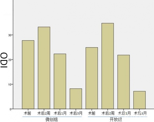 图 3. 微创组和开放组病例术前及术后的ODI评估