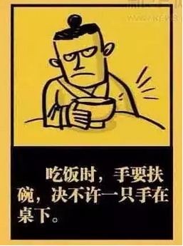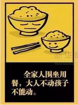 记得小时候,吃饭如果只用一只手拿筷,另一只手放在桌子下面,必然遭来爸爸严厉的批评,即使现在,吃饭忍不住玩手机,被老爸看到,依然会皱起眉头说我吃饭要有吃饭的样子。筷子如果拿太前也是要被说的。