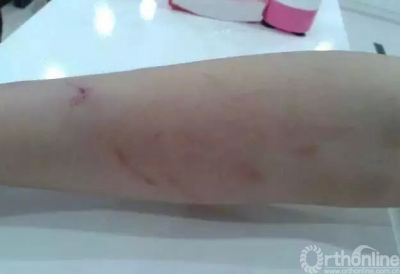 打人者是送一个醉酒至神志不清并且摔伤头部的朋友到医院就诊,先到五官科处理伤口,然后前往急诊科找内科医生,医生开具处方之后,打人者没有按照正常程序去取药,而是立即到注射室要求护士打针(从视频可以看到):1、打人者进注射室时没有拿药;2、护士正在为其他病人服务。于是,护士告知其先要到药房取药,再来打针。紧接着打人者便开始了暴行。由于注射室中的另一间房间没有监控视频,所以我们只能从视频中看到护士挨了两巴掌,但实际上受到的伤害远不止于此,下面有几张伤者照片和爆料图片。(为了保护他人隐私,部分图片已进行一定处理)