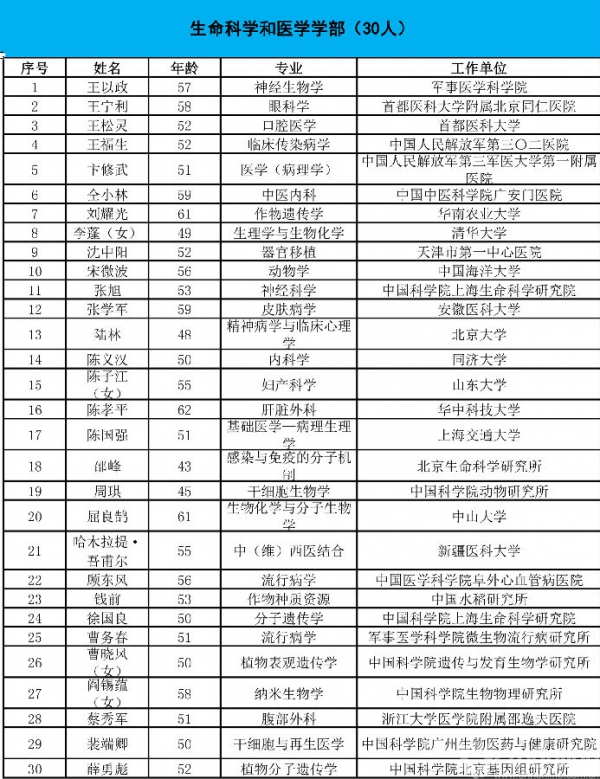 2015年中国科学院院士增选初步候选人名单出炉