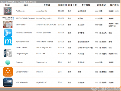 2014年,根据动脉网互联网医疗研究院统计,FDA共审批通过了31款互联网医疗产品,其中有16款APP。到2015上半年,我们针对医疗app单独进行了梳理,发现通过FDA审批的有10款。如果按这个比例持续下去,将会超过2014年的总数。
