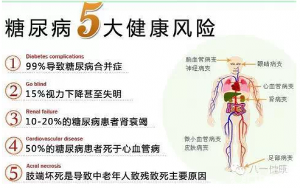 是指血糖,糖尿病绝不是“不吃糖”那么简单,它是诱发全身并发症的重要因素,因此建议空腹血糖一定要保持在6毫摩尔/升以下。