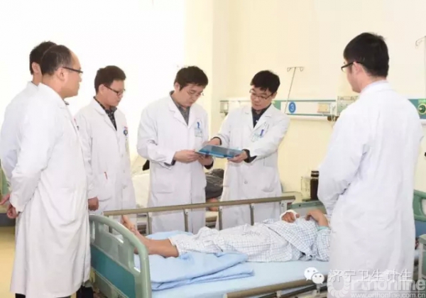 2016年1月14日上午,济宁市一院手足外科主任曾文超早早来到医院,查看患者情况,重点为赵康成(化名)进行检查。断手连接后的血运情况良好,和手臂之间的血液循环通畅,赵康成的气色已经有了明显好转。