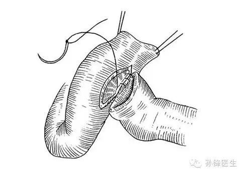 图(9) :肠管缝合时,打结切记太紧