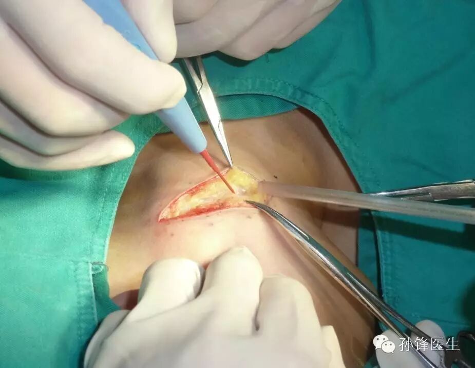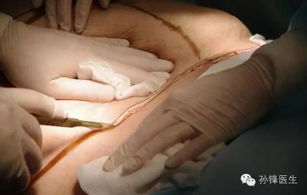 3、切开过程要保持刀刃与腹壁垂直,这样才能保持切口的两边缘对称;