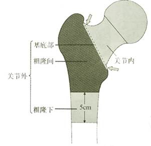 自股骨小转子至股骨干中段与近端交界处即骨髓腔最狭窄处之间部位的骨折;