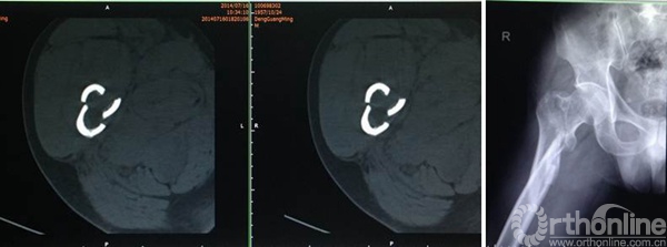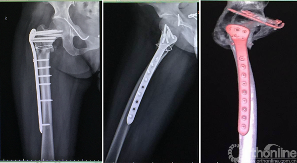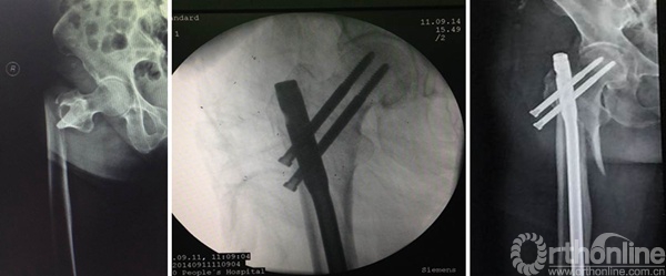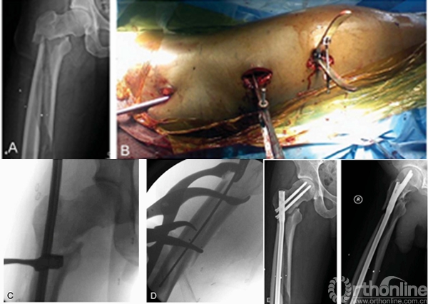 进针点和力线很难把握,即使应用很巧妙的复位技术获得了术后很好的力线,避免了髋内翻,但如此大块的骨块劈裂游离不处理,会存在退钉和骨不连或者髓内钉断裂的风险。
