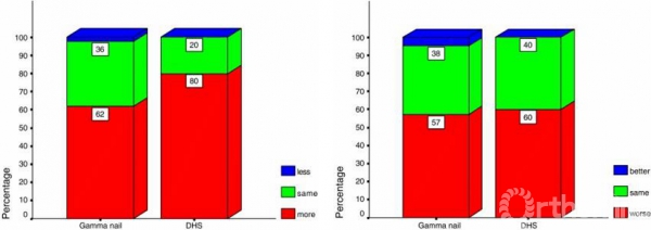 倒打LISS组骨愈合和患者承重时间延长,PFNA创伤小、出血少、功能锻炼佳,主张用髓内系统。