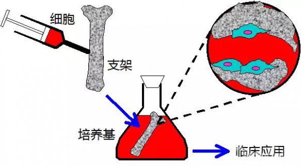 骨组织工程学(BTE)的基本思路:干细胞+支架材料+构建