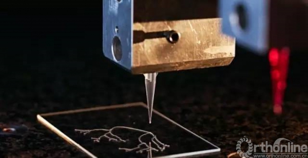 2009年有位俄罗斯科学家Mironov在骨科领域提出了一个“生物复制(Bio-fabrication)”的概念,并付诸于实施,准确的说,他用当时还很新潮的3D打印技术,把骨组织直接打印出来。“骨打印”这个想法其实最早是90年代末组织工程学人员在痛苦的细胞、支架分步培养操作中冒出的大胆设想。1999年的时候,有人脑洞大开,用市面上的HP或者EPSON喷墨打印机,把脊髓细胞“打”到了玻璃板上的培养基表面,通俗地讲,就是在这里滴几个细胞、那里滴几个细胞而已。人们突然发现,这是个好主意,至少在速度、分布和效率上,比起以往的手工种植细胞要强多了。于是这帮人不怕事大,进而开始用打印机“打”蛋白质分子和大细胞悬浮液(我们前面说过的成骨细胞因子,就是一些蛋白子大分子;而干细胞有的体积很大)。为了实现这一点,研究者突然发现需要把HP打印机和EPSON打印机的喷墨口弄得大一点,因为原先的喷嘴口径过于精微(汗)。通过这种打印方法获得的细胞,大约能够存活75%左右。到了2004年,科研人员们已经能够通过改良的喷嘴来打印软骨细胞、成骨细胞和成纤维细胞这些组织工程学最常用的细胞了。