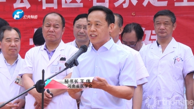 开诊仪式上,王伟秘书长、王义生主任、滑县卫生计生委主任曹黎冉以及骨科专家代表分别做了讲话。同时,河南省医学会还为当地学校进行捐赠了书包和学习用具。