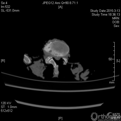 对脊柱标本进行CT扫描重建,术后CT如图3所示。分别选取三个层面:上终板层面,间盘层面,下终板层面,对术前、术后三个层面分别进行参数测量:椎管横径、椎管前后径、椎管面积。统计学分析结果:术后各层面参数均比术前增大,统计学差异有显著性。