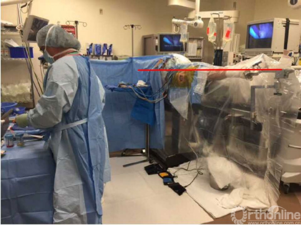 在体位摆放完毕后的准备工作中,美国医生也有很多经验可供参考。图12示为Marc Philippon医生手术室的基本布局,可以看到患者体位较高,这与医生的身高和习惯有关。