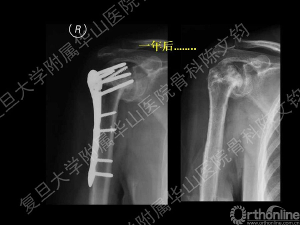 一年后复查:右肱骨头吸收坏死