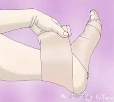 用弹力绷带加压包扎患处,减轻出血和肿胀。不可太松或太紧,太松无效易脱落,太紧脚趾会肿麻,不利于血液循环。注意观察肢体远端的皮肤温度、颜色变化,防止冻伤或皮肤坏死。