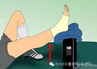 尽可能的把患踝抬高到心脏水平以上,加速静脉血和淋巴液的回流。同时可以借助超声波等理疗仪器达到局部软组织消肿止痛、加速代谢促进愈合等作用。