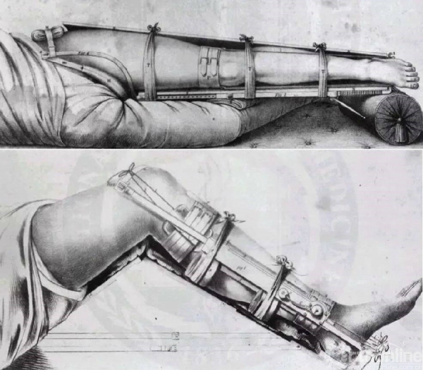 1798年,来自欧洲的旅行者Eton在其《土耳其帝国游览》(A Survey of the Turkih Empire)一书中记述了自己在奥斯曼土耳其帝国所看到的骨折治疗实景:“我看见帝国的东部有一种固定骨骼的方法……用一个与肢体形状确实相符的而没有一些压迫的石膏盒子包住患肢,在几分钟以后,石膏就变成固体并坚实……”这是人类最早关于石膏外固定的记载。和外固定支具一样,石膏作为人类骨折治疗的先驱手段,很稳定地延续到了今天。而人类对于骨折治疗的最初、至今依然还是最根本性的认识——维持伤肢稳定——从几百年前的时代就已奠定。