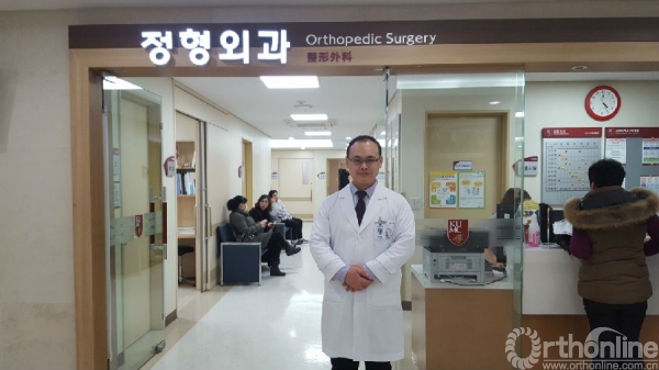 Mr.Park一早带我去见教授,Song教授一见到我热情的拥抱,简单的寒暄之后,带我到骨科病房,马上我认出邮件里Dr.Ruel和其他医生们,Ruel把早已办好的胸卡交给我,教授让我简单做了自我介绍,并且补充说“Dr.Zang来自中国ASAMI主席秦泗河教授团队,他们有三万多个Case,你们一定要多多交流”,并单独安排我在住院医生办公室日常办公。转身开始安排今天需要学习的内容和研究计划。突然的一连串的韩式英语间杂着异常流利的韩语,一时间不能确定我是否完全明白教授的意思,和我一组的国际Fellow Dr.Ruel来自菲律宾,他看出了我的疑惑,向我做出条理性非常强的解释。教授带我们查房,这是每天都要做的事,虽然韩语的查房我听不懂,但可以感受到教授对患者非常友好,愿意倾听患者的主诉,都在床边停留片刻做出解答。