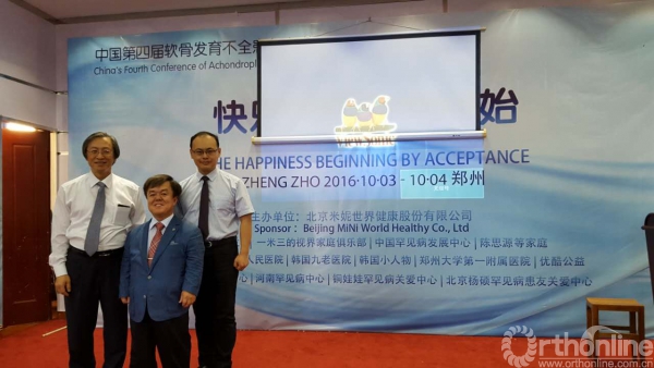 中国软骨发育不良会议在郑州召开,Song教授(左一)Mr.Kim(韩国小人物协会会长)应邀参会。