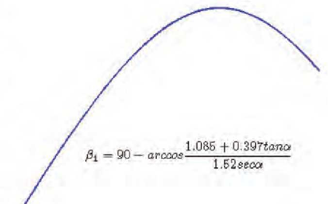 在以假设髋臼假体外展角45°不变的情况下,随着骨盆的前旋转,其实际外展角呈增大趋势,当骨盆前旋转角度达到20°时,实际外展角β1为50°,达到安全区范围最大阈值。随着骨盆的后旋转,其实际外展角呈减小趋势,当骨盆后旋转角度达到29.47°时,实际外展角β2为30°,达到安全区范围最小阈值。其髋臼实际外展角与骨盆倾斜角度呈的函数关系(图5)。