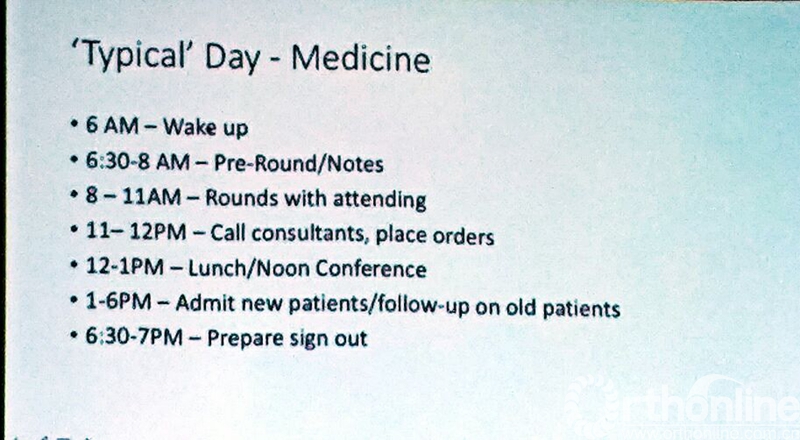 骨科Residency一般需要5年, Residency期间要非常辛苦。外科Resident需要早上5点起床一直工作到下午7点,内科医生稍轻松一点,工作时间为早上6点到下午7点。