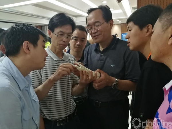 张建中主任通过模型实例与病例以及幻灯片,向参会代表讲解了拇外翻手术的各种截骨术式的选择适应征、截骨的操作技巧以及手术并发症和并发症的处理方法。