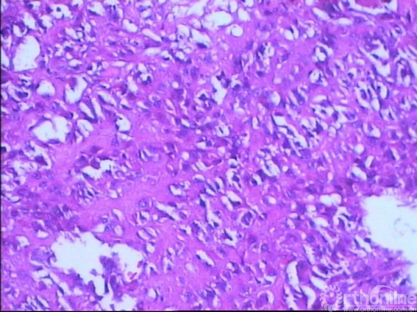 于当地医院未行病理学检查,直接手术行“病灶刮除、钢板内固定术”。