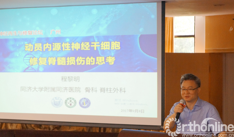 中国研究型医院学会神经再生与修复专业委员会副主任委员、上海同济大学附属同济医院院长程黎明教授就《动员内源性神经干细胞修复脊髓损伤的思考》作了演讲。