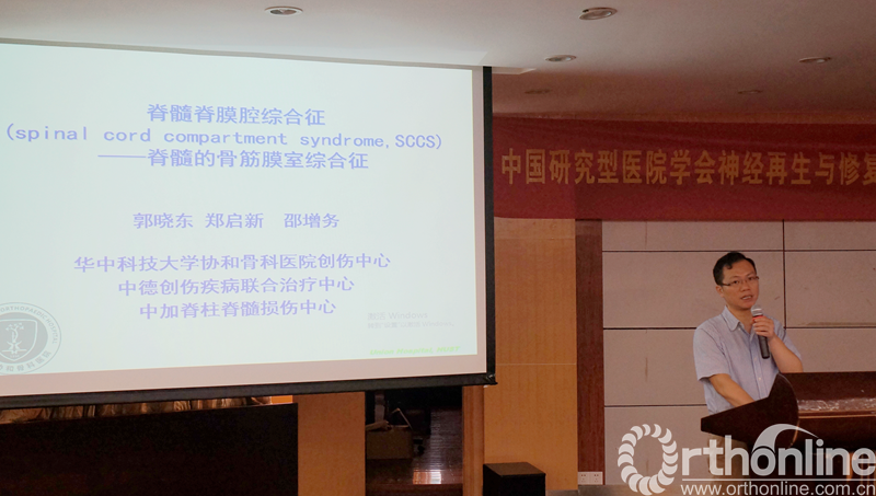 华中科技大学同济医学院附属协和医院骨科郭晓东教授介绍了《脊髓脊膜腔综合征—脊髓的骨筋膜室综合征》。郭教授首先介绍了脊髓脊膜腔综合征(SCCS)的背景及概念,强调脊髓广泛水肿或血肿时,必须充分减压,骨科医生不能只管骨头复位固定,而忽略脊髓神经和水肿。