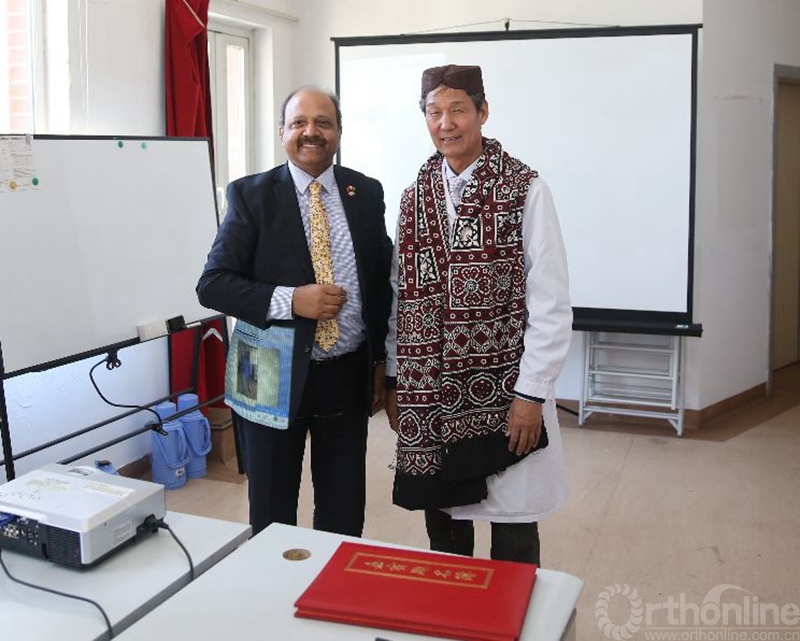 Nizami教授看到同行接待的还有俄罗斯医生,亲切的用俄语交谈,当其知晓这位俄罗斯医生是来自Ilizarov中心并来北京作Fellowship时,他流露出惊讶而且敬佩的眼神。
