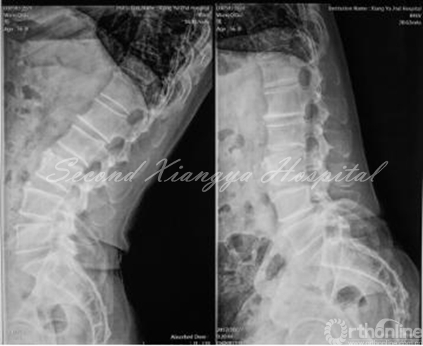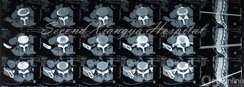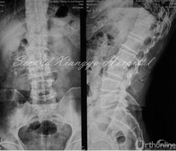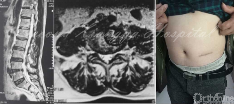 病史:男,56岁,腰背部胀痛10年,活动后加重,休息后减轻,每年发作1-2次,每次卧床休息一段时间后就可缓解。8个月前腰痛加重,出现右小腿后外侧疼痛,偶有麻木,休息后稍微减轻。保守治疗无效。