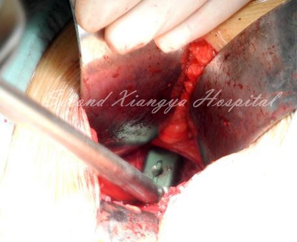 5.另一拉钩置于椎体侧前、交感神经链前方,将其稍向后牵开;