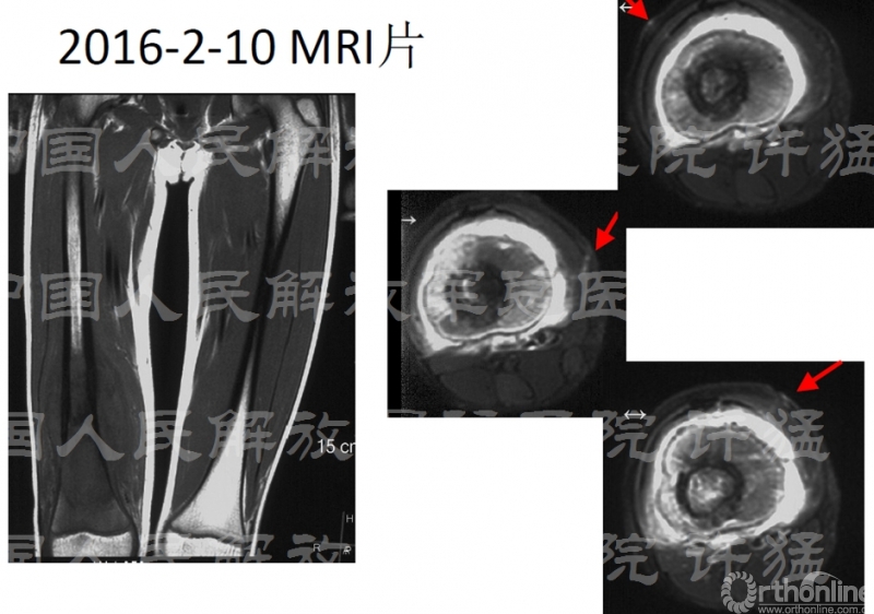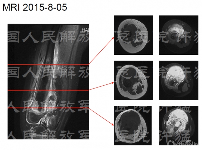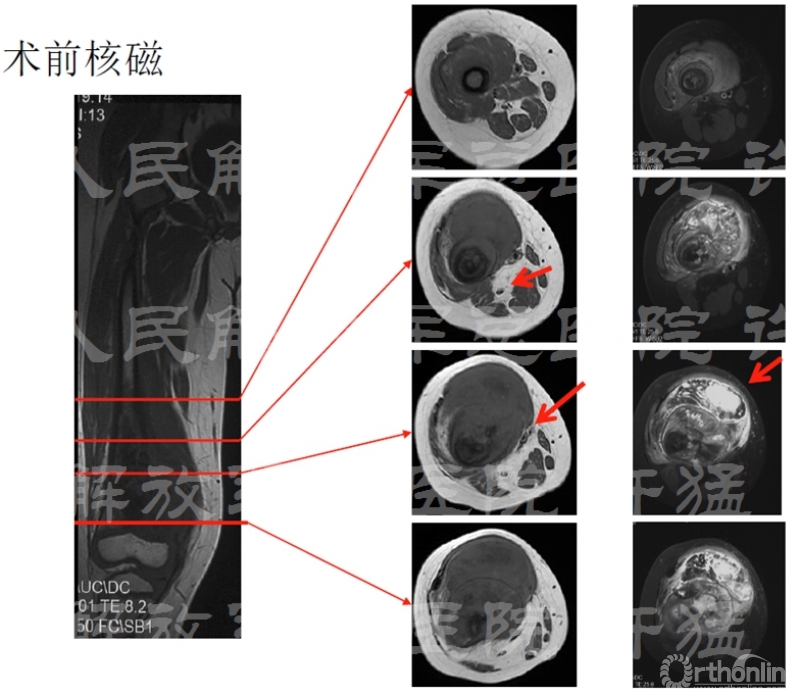 核磁显示股四头肌伸膝装置受到肿瘤累及