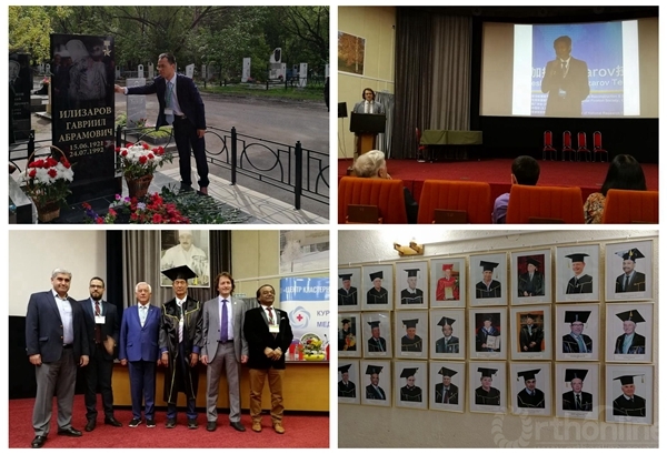会议第二天,6月15日适逢Ilizarov教授诞辰纪念日,清晨第一项重要活动是中心的专车带领各国专家去瞻仰Ilizarov教授的墓地并敬献鲜花,表达敬仰和哀思。第二项重要活动时返回会场,进行中心的外聘荣誉教授的授予仪式。值得庆贺的是由于秦泗河教授对Ilizarov技术和中俄学术交流所做的杰出贡献,此次会议期间Ilizarov矫形外科学院授予秦泗河中心终身荣誉教授,秦老师是继日本黑川高秀教授、孟加拉国巴瑞教授后第三位获此殊荣的亚洲人。