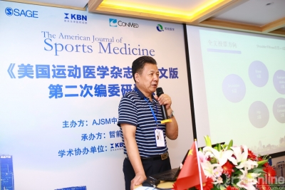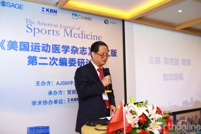 陈世益教授在研讨会初始,就AJSM中文版发展情况继上一届编委会议召开以来的工作进展进行了总结发言。他充分肯定了AJSM中文版取得的进步,并从编委会的使命感、责任感和工作思路等方面提出各位编委在编辑了要求,希望他们能在工作中强化学术的引领性,抢占内容的制高点;充分挖掘编委会的资源优势,培育核心竞争优势,扩大刊物的学术影响力,把AJSM中文版打造成一流的运动医学学术交流平台。