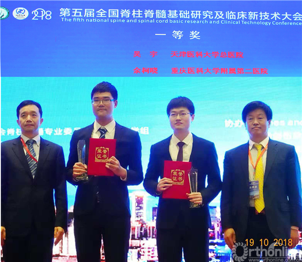 同时为下一届将在山东泰安召开的第六届脊柱脊髓基础研究及临床新技术大会提出了宝贵建议。中国康复医学会脊柱脊髓专业委员会副主任委员胡勇教授对我国近年来在脊柱脊髓损伤研究在广度与深度上取得飞跃式发展及成果表示了肯定及祝贺,同时也对今后在脊柱脊髓继续开拓创新,为我国脊柱脊髓患者及残疾患者的医疗与康复研究更快发展、取得更多新成果表达了期许与鼓励。殷国勇教授对此次大会准备10个月之久的成果作了肯定。张宏教授为大家宣布了青年论文比赛结果,并邀请了大会委员为获奖选手颁奖。