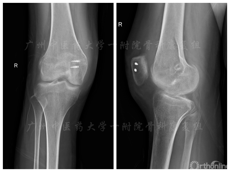 带着疑惑、忐忑、期待,雯雯来到了广州中医药大学第一附属医院运动损伤康复专科,找到了骨科康复团队。经过详细的体检评估,发现她的膝关节活动范围在5°—75°,右下肢由于长期制动,股四头肌、腓肠肌等肌肉萎缩明显,大腿周径较对侧少了近4CM。复查X片:右髌骨内侧金属影,符合术后改变,髌上囊肿胀;右膝稍外翻。