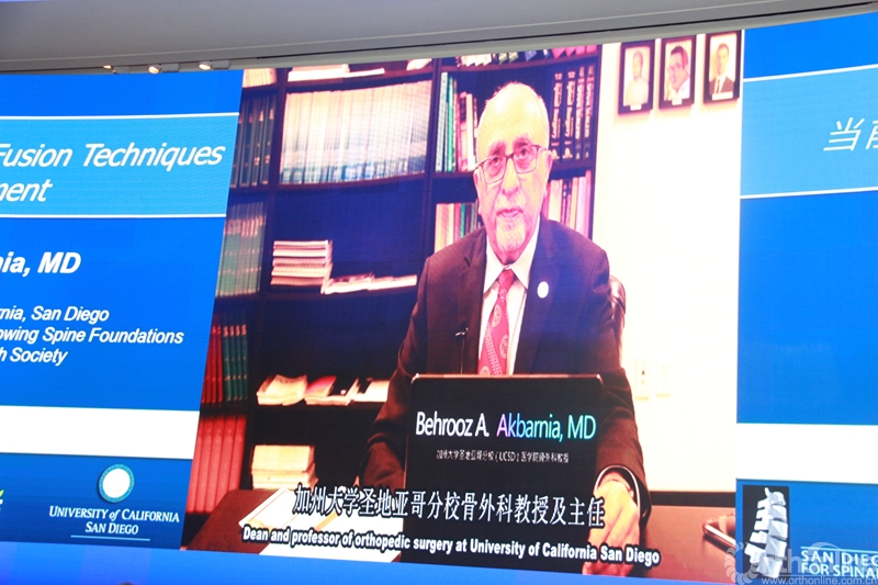 Behrooz A. Akbarnia教授虽然未能亲自来到现场,但他通过视频授课的形式为大家进行了关于“非融合技术治疗早发性脊柱侧凸最新观点”这一别开生面的报道。他结合自己临床经验,通过早发性脊柱侧凸的病例回顾,对早发性脊柱侧凸治疗策略的发展及最新进展进行整体概述,并对其中技术的核心要点进行详细阐述。