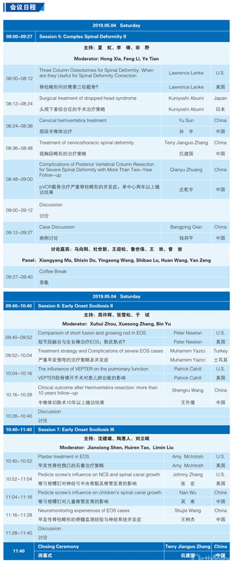 在5月4日上午,参会嘉宾将集中讨论复杂脊柱畸形以及早发性脊柱侧凸,内容同样精彩,值得大家期待。