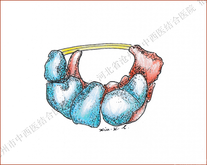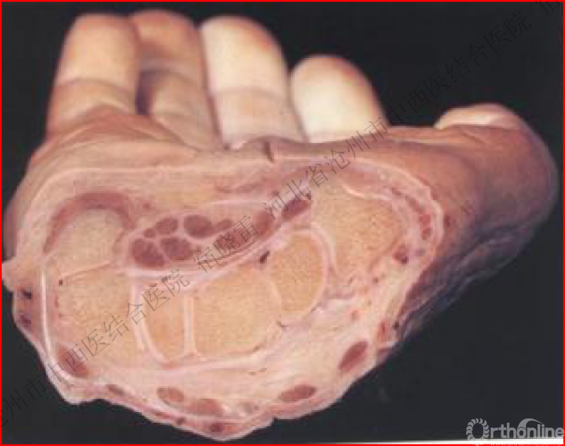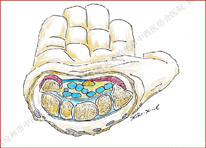 由八块腕骨和腕横韧带形成一个封闭的隧道
