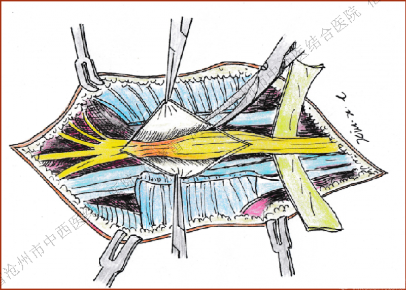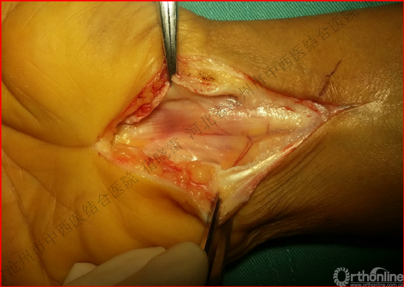 切断腕横韧带,解除对正中神经的压迫。有时需同时进行正中神经束间松解术