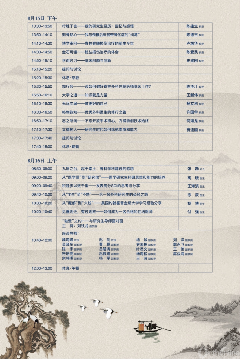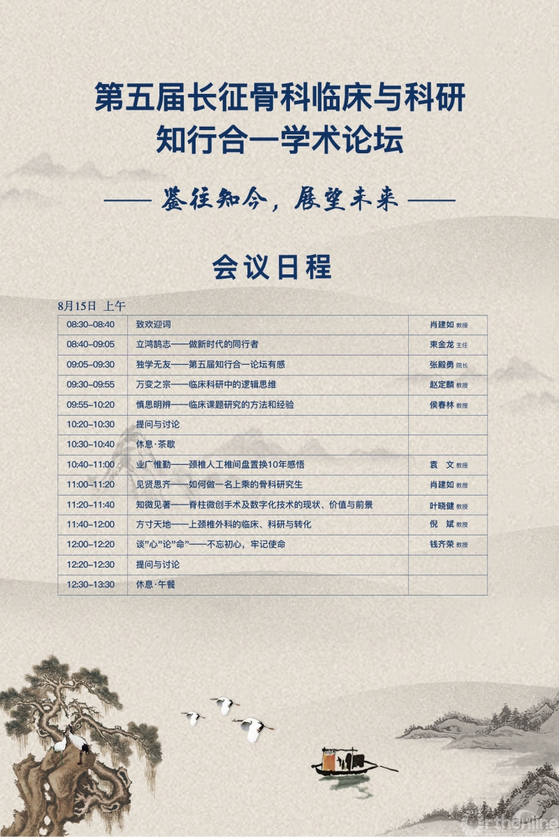 2019年8月15至16日,在第五届长征骨科临床与科研知行合一学术论坛上,前辈们传递给年轻医生和学子们一把把开启临床与科研高峰“门禁系统”的钥匙。长征骨科“知行合一”论坛是上海市教育委员会学位办公室主办的研究生教育项目,由海军军医大学研究生院、上海长征医院骨科、全军骨科研究所承办。这一论坛目前已举办五届,逐渐成为长征骨科的特色品牌论坛。