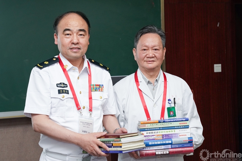 图6 侯春林教授向长征骨科显微外科技术培训中心捐赠个人撰写图书