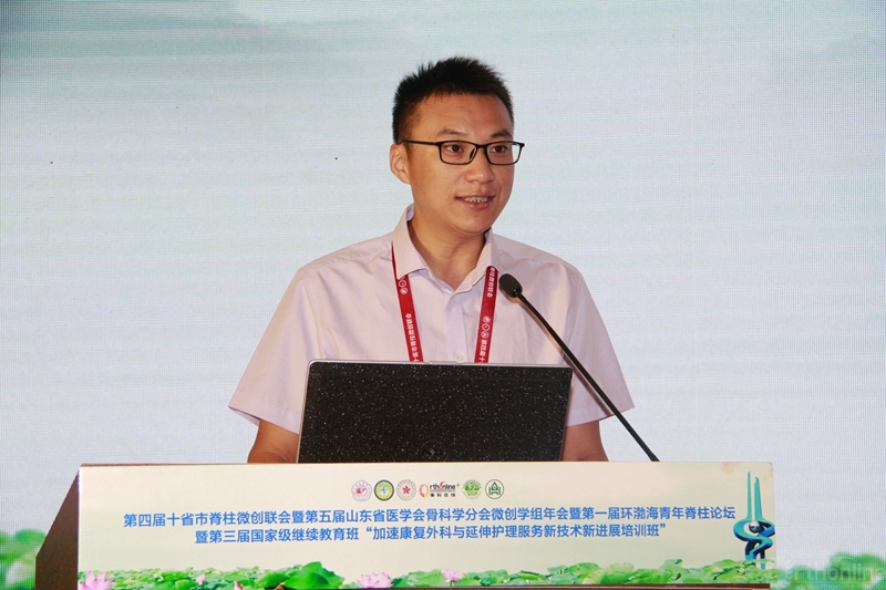 大会共同主席、中国科学技术大学附属第一医院(安徽省立医院)张文志教授讲解了《腰椎术后继发椎间孔狭窄的预防及微创治疗》。他强调术前精准诊断、术中重视椎间高度恢复、退变性滑脱增生上关节突术中切除、术中合理椎间孔成形等手术步骤十分重要。