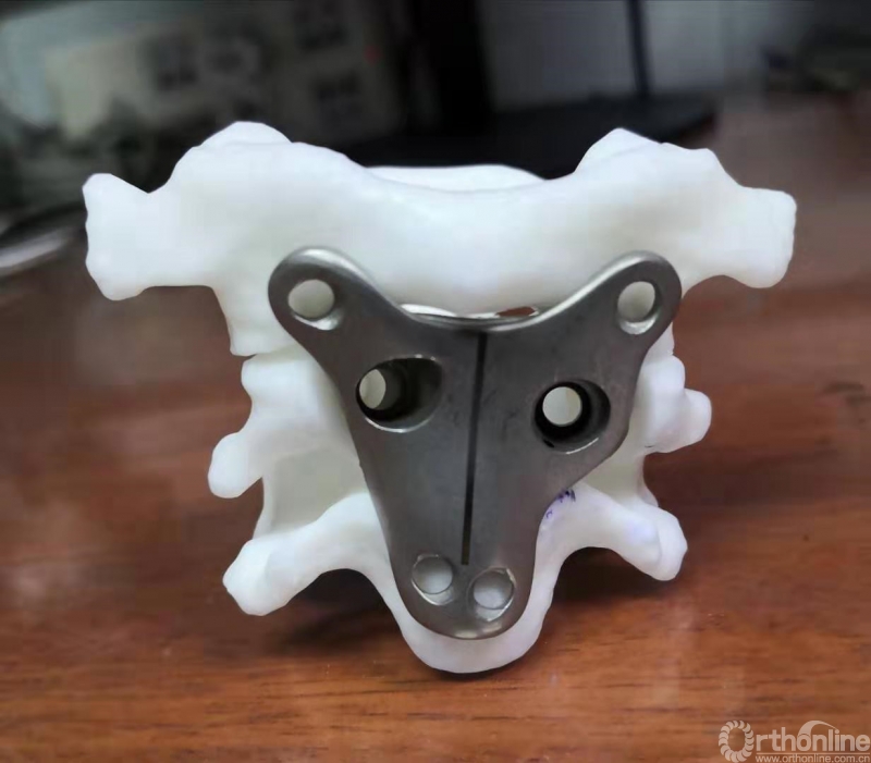 3D打印的假体与患者上颈椎实体尺寸模型匹配