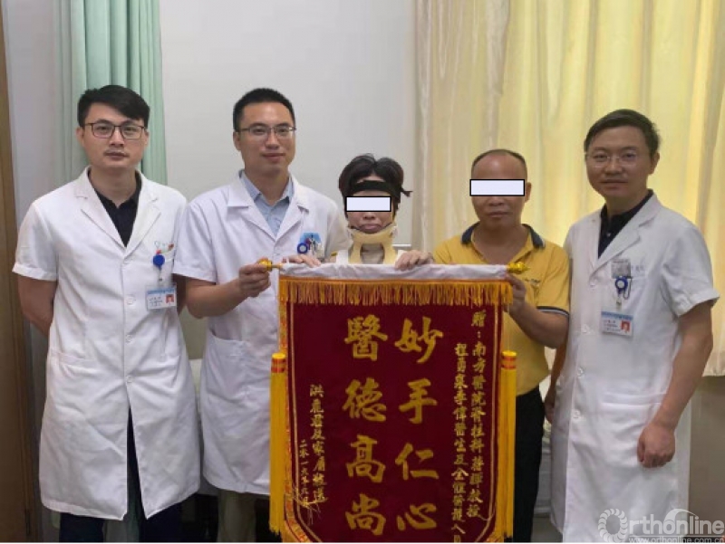 8月22日,在耳鼻喉科、麻醉科协助下,与程勇泉博士、季伟博士一起历时10个小时,完成了这台挑战性极高的手术。术后在重症医学科和脊柱骨科护理团队的通力配合下,患者恢复顺利,目前已回归正常生活。